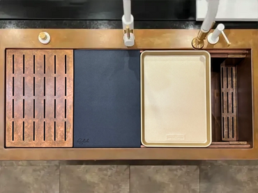 Unlike traditional "dual tier" workstation sinks, our design eliminates water pooling on the flange, preventing caulk degradation and other common issues. Accessories glide effortlessly between levels, maximizing functionality. Perfect for sinks 42" and larger, we also craft 36" versions for compact spaces without compromising performance. Upgrade to the ultimate in kitchen innovation!