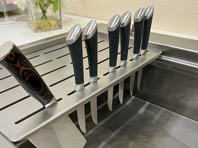 Whether you're mid-chop and need to set your cleaver down or just want to keep your tools organized and out of the way, this solution blends safety with smart design. It’s also the ideal place to let your hand-washed knives and cleavers air dry—no more towels on the counter or dangerously balancing blades near the sink edge. Free up space without sacrificing function. No more messy countertops—just seamless, stress-free prep.