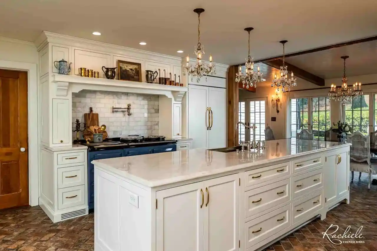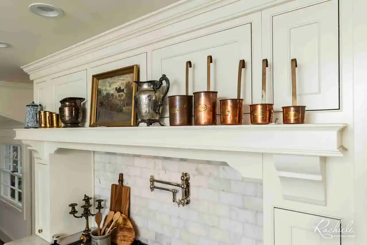 At Rachiele Custom Sinks, we encourage our clients to experiment with mixed metals in their French Country or Traditional kitchens. With a custom brass, bronze, or copper sink as the focal point, the variety of tones and textures creates a welcoming atmosphere that feels uniquely personal. Let’s explore how mixing metals can transform your kitchen and bring a touch of warmth and sophistication that truly stands out.